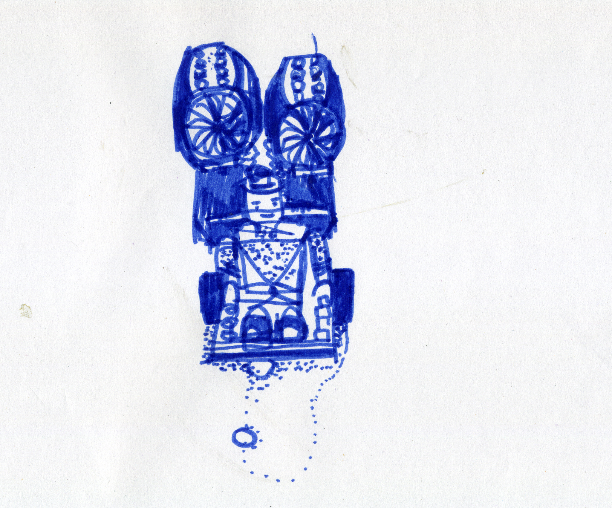 AArgh..a blue felt tip pen. Apologies. It is fairly frightening. But it was there on the table. And so was the rockety thing.